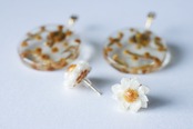 花かんむりという白いお花と、春のお花ミモザでドット柄をあしらったピアスです。
